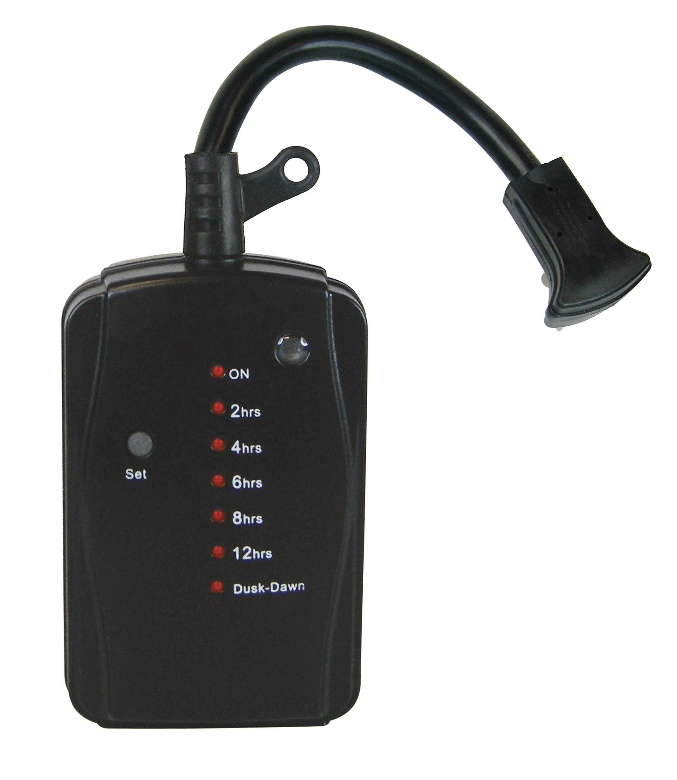 This Outdoor Timer features Interruption-Free Programming and prevents Headlights, Porch Lights and Street Lamps from interfering with the unit. The unique positioning of the outlets accepts most low-profile, right-angle and transformer plugs. The Photocell Activated components will activate the programming or reset only after the programming cycle has completed. Multiple timer options include 2hr., 4hr., 6hr., 8hr., 12hr., Dusk-to-Dawn, or Always On settings.