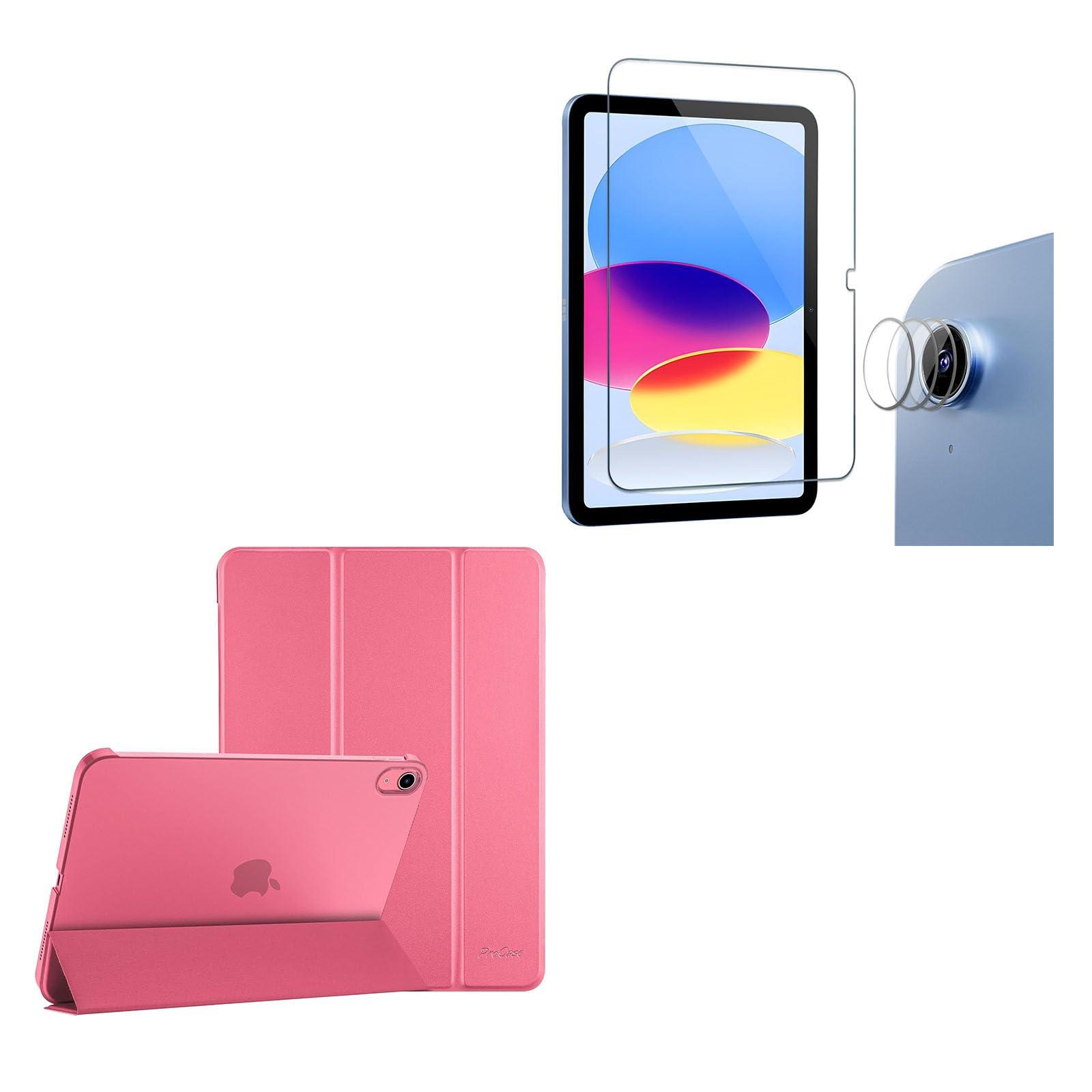 - ProCase for iPad 10th generation case 10.9 Inch 2022(pink) bundle with 1+3 pack tempered screen protector for iPad 10th generation with camera lens protector