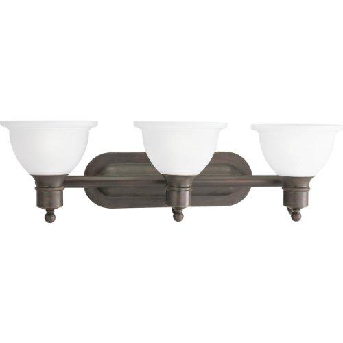 With a timeless, uncomplicated sensibility, the Madison Collection offers decorating versatility along with classic style. Three-light wall bracket with white etched glass Uses (3) 100-Watt medium base bulbs 27-1/2-Inch Width x 8-Inch Height Fixture mounts in up or down position