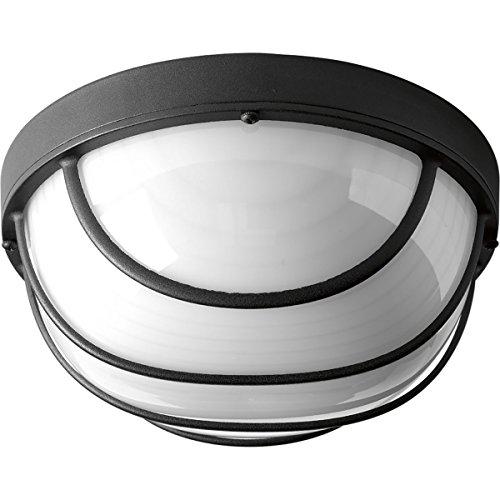 One-Light 9-1/2" LED Wall or Ceiling Bulkhead. General purpose LED luminaire comprised of a die-cast aluminum frame and polycarbonate diffuser with cage design. Fixtures are impact resistant and can be mounted on wall or ceiling. Replaceable LED module. Black finish.