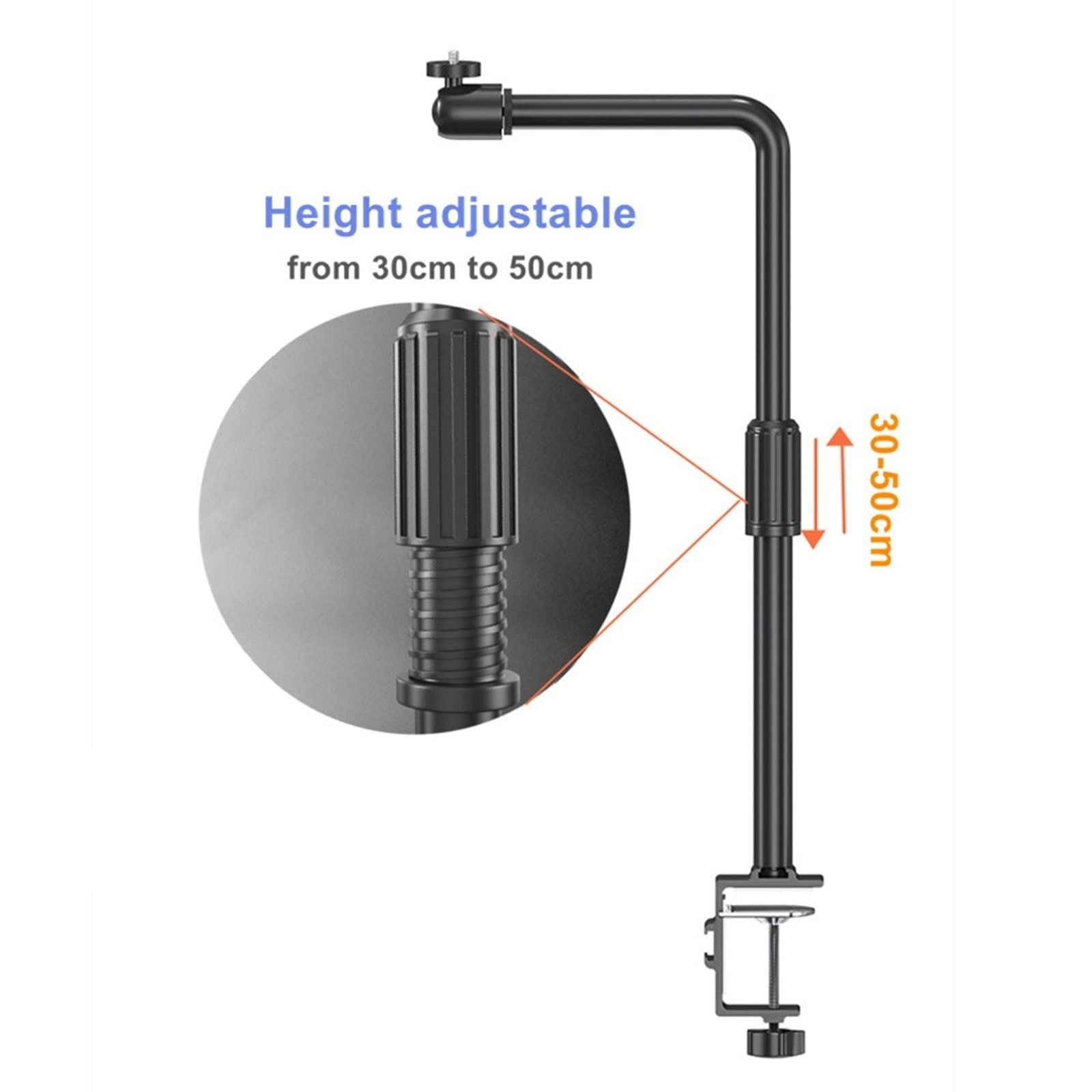 - Adjustable Desk Light Stand : There is a width adjustment button at the bottom. This design can help you adjust the width of the camera bracket to adapt to tables with different thicknesses.