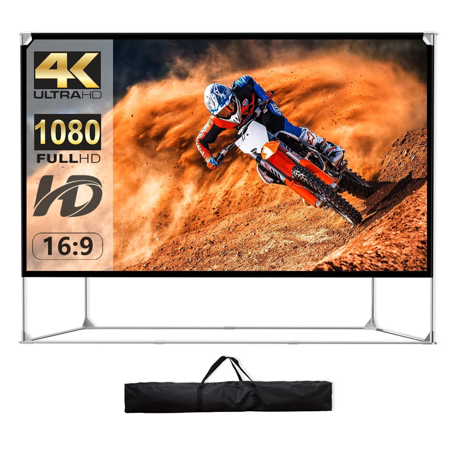 - Ultra-large Outdoor projector screen150-inch projector screen and stand, 16:9 aspect ratio, 4K ultra-high definition, 160-degree wide viewing angle, experience the Outdoor movie feeling at home or outdoor at any time