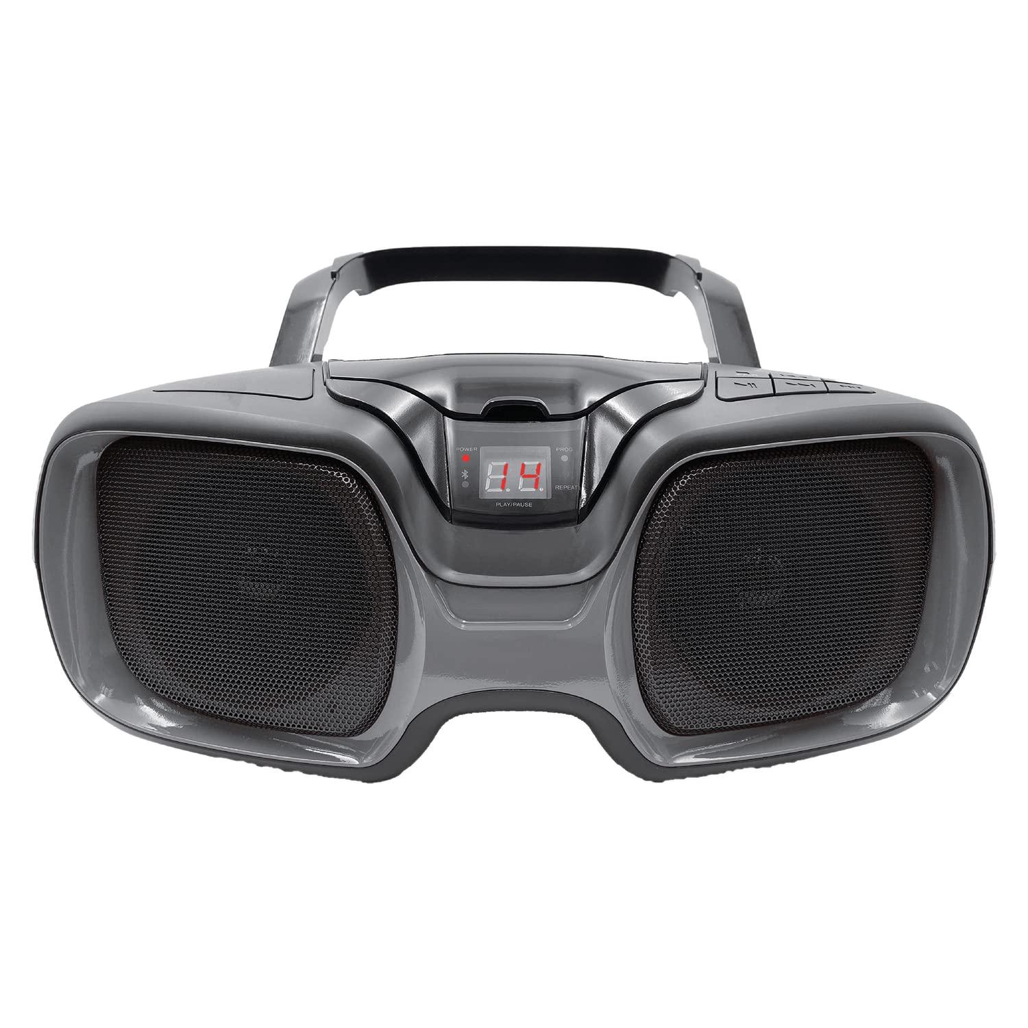 The Proscan Bluetooth Portable CD AM/FM Radio Boom Box features a top-loading CD player, built-in AM/FM stereo receiver, and an aux input for connecting your iPod, MP3 player, or other digital audio players. With it, you can also stream music from your smartphone or other device via Bluetooth. The built-in CD player is CD-R/RW compatible and it also features an LED CD track display, skip/search functions, repeat function, and programmable memory. This boom box runs on AC power with the included cord but can also run on 6 C batteries (sold separately).