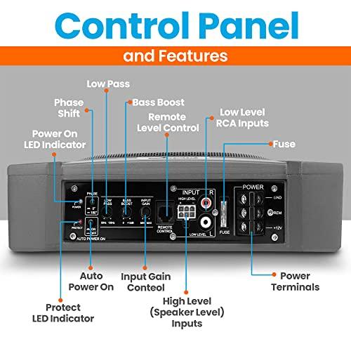 - BUILT-IN AMPLIFIER: The integrated amp in the compact subwoofer features low pass crossovers & control for adjusting input sensitivity from 0.12V to 3.5V. Includes variable bass boost, control the subwoofer level w/ the remote level control module