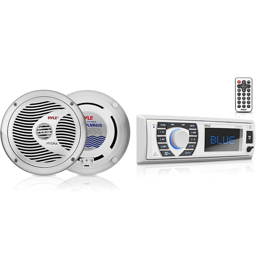 Pyle Bluetooth Marine Receiver Stereo - 12v Single DIN Style Boat In dash Radio Receiver System with Digital LCD, RCA, MP3, USB, SD, AM FM Radio - Remote Control, Wiring Harness - PLRMR23BTW (White)
