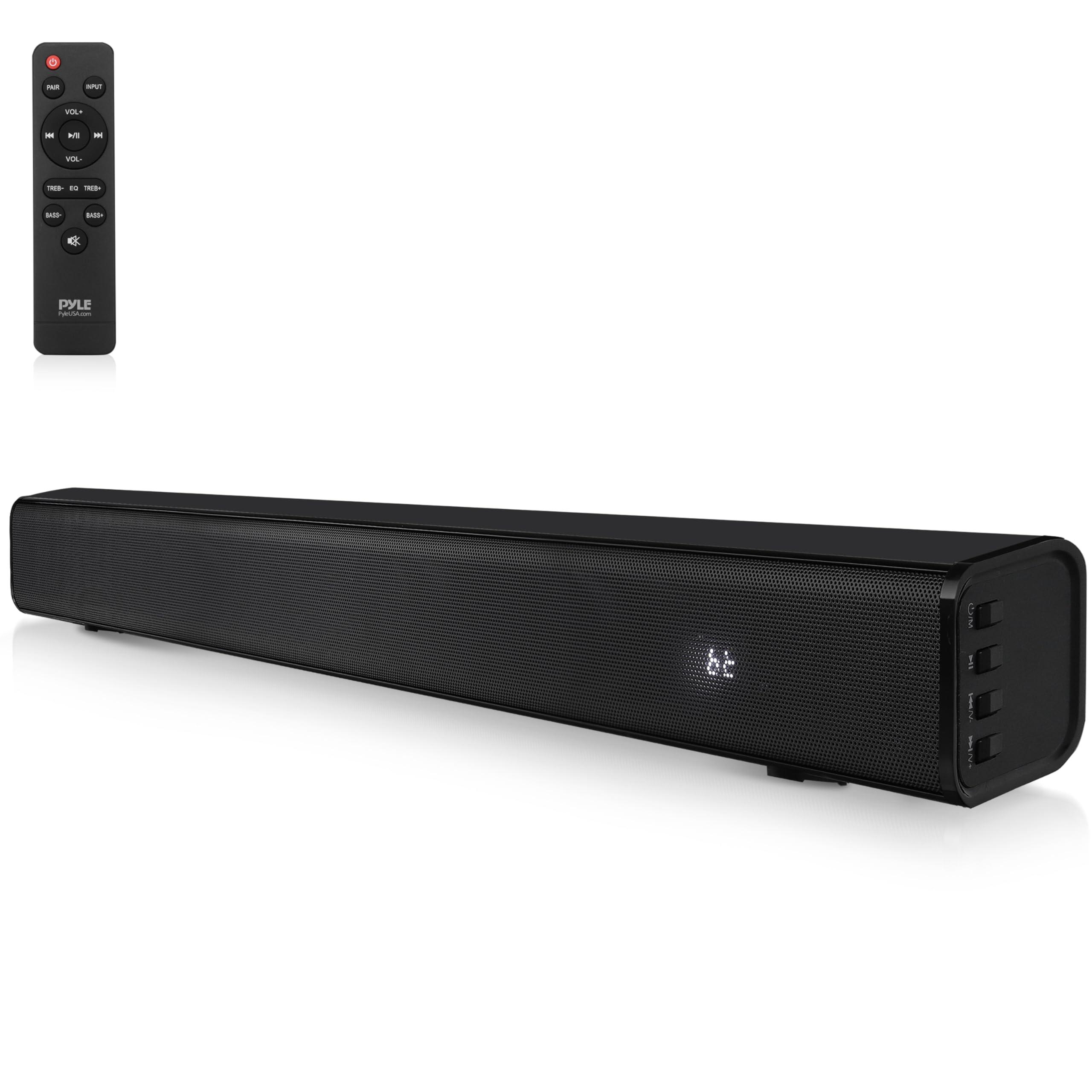 - CONVENIENT AND EASY TO USE: With the convenient source selection with LED indicators, & easy to touch button audio select control center, the Pyle Home Theater soundbar speaker is easy to use and set up and designed to sit under your television