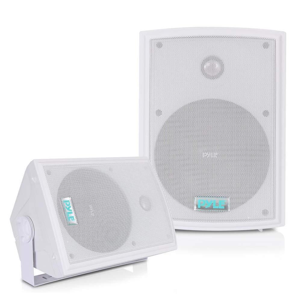 - AMPLIFY YOUR HOME: Pyles 350W dual indoor outdoor wall mount speaker system is what you need to listen to high-quality audio in your home, backyard, pool or patio outside! Includes (2) 6.5 inch long throw w/ 60 oz magnetic structure 8 ohm speakers