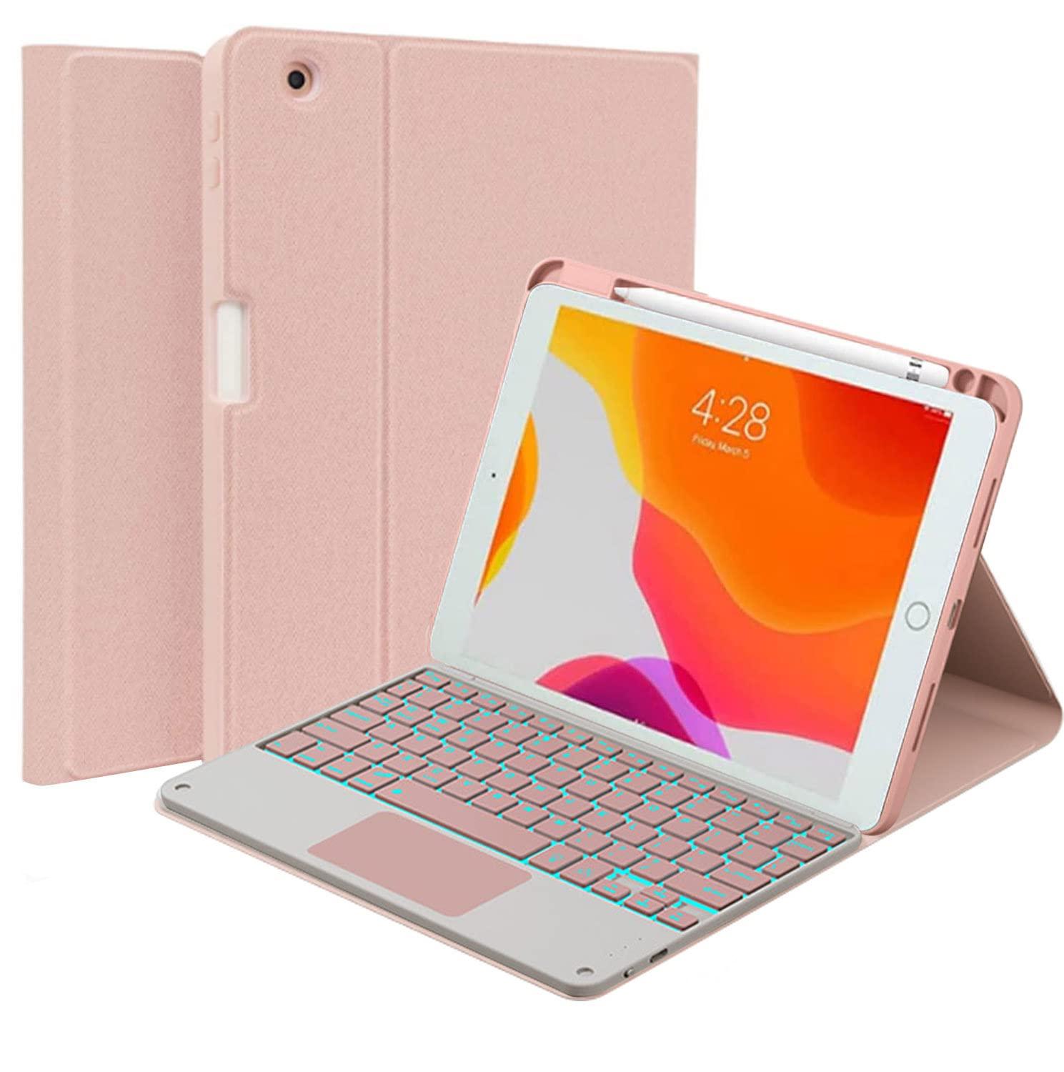 - [7-color Backlight Bluetooth Keyboard]: Convenient and fast Bluetooth connection allows you to use the keyboard anywhere, anytime. And its keys are quiet and comfortable. The iPad case with keyboard comes with power-saving mode, long periods of non-use will enter the hibernation state. 3 levels of brightness and 7 vibrant colors make typing fun and easy, whether in the dark or in bright environments.