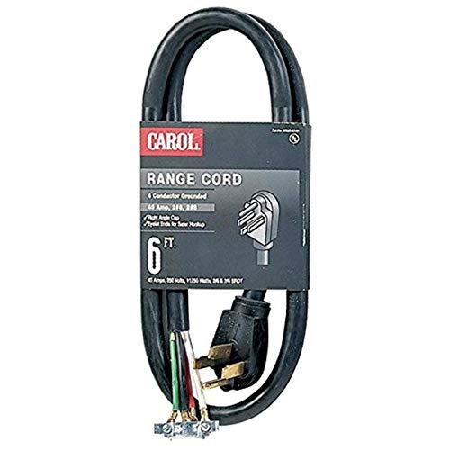 Range Cord, (2) 6 AWG + (2) 8 AWG, 4-Conductor, 6\', Black Jacket, 250 Volts, 50 Amps, 12500 Watts, NEMA 14-50P, Type SRDT, UL Listed, For Ranges in Homes Built After 1997
