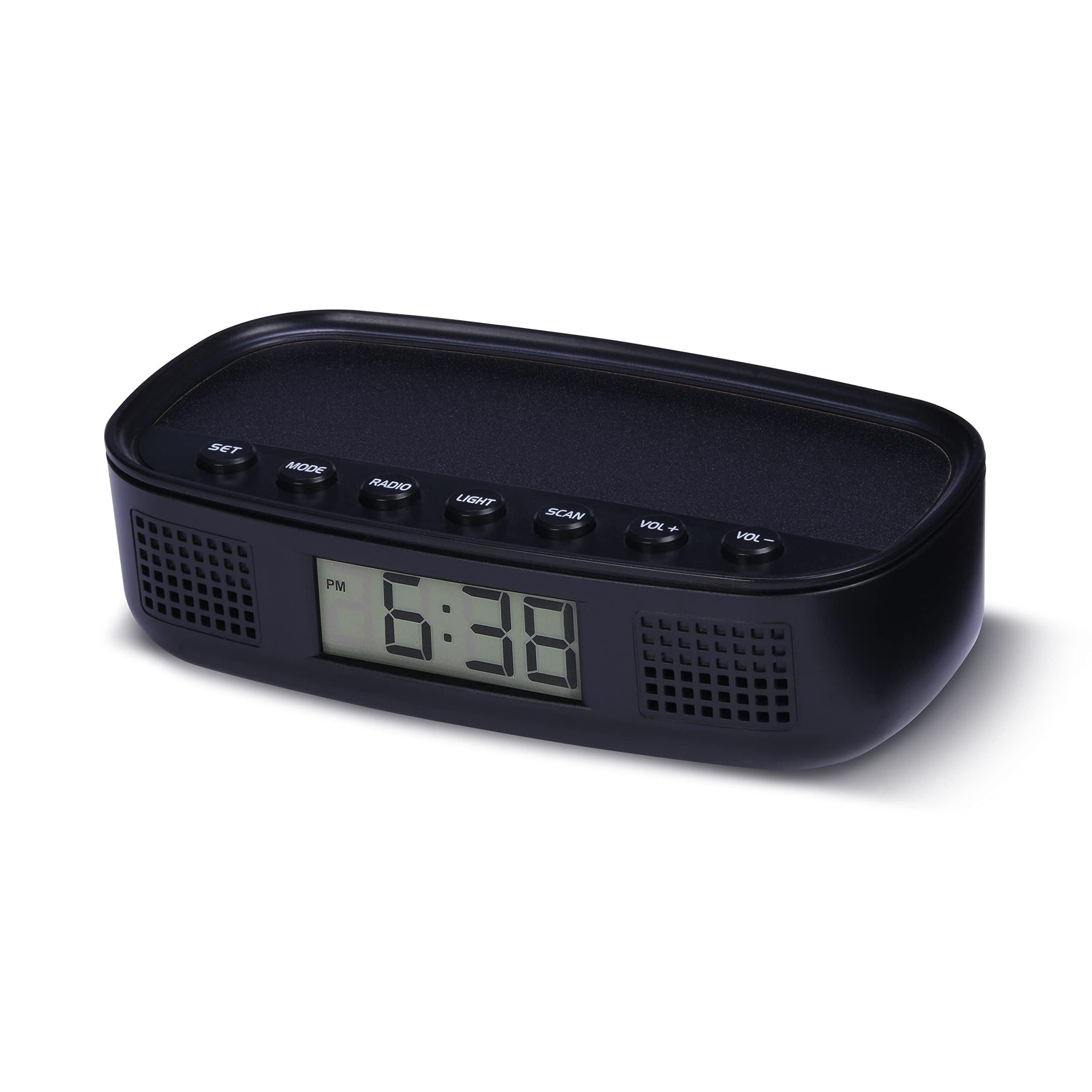 Wake up in the morning with the RCA Digital Radio Alarm Clock. The digital clock radio provides an alarm function to wake you up, an FM radio to catch some tunes or get caught up on news, and a back-lit clock so you can see the time in the dark at any hour. The clock is small, light, and readily portable. It is powered by USB (power cable included) or with 2 AAA batteries (sold separately). It includes a 1-year limited warranty.