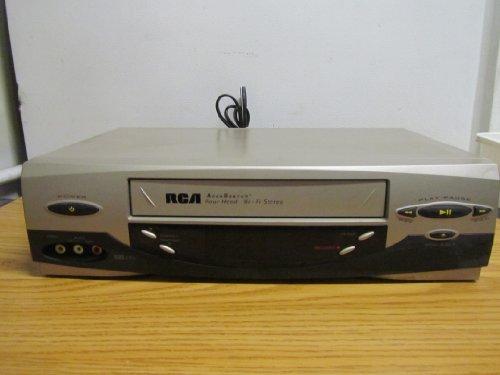 Looking for hi-fi stereo sound and 4 heads for jitter-free special effects? Choose the RCA 4 Head Hi-Fi VCR. Features include auto clock set that automatically sets the clock during initial setup, as well as after most power interruptions. Front audio/video inputs provide convenient front connection for camcorder, video game, additional VCR or other video source. Unified remote control provides total control of the VCR plus the basic functions of most RCA and GE televisions. Also includes commercial scan, SQPB, QuickSet guide, English/Spanish/French on-screen menu, 19 micron head, showsaver and go-back (previous channel). No. VR637HF.