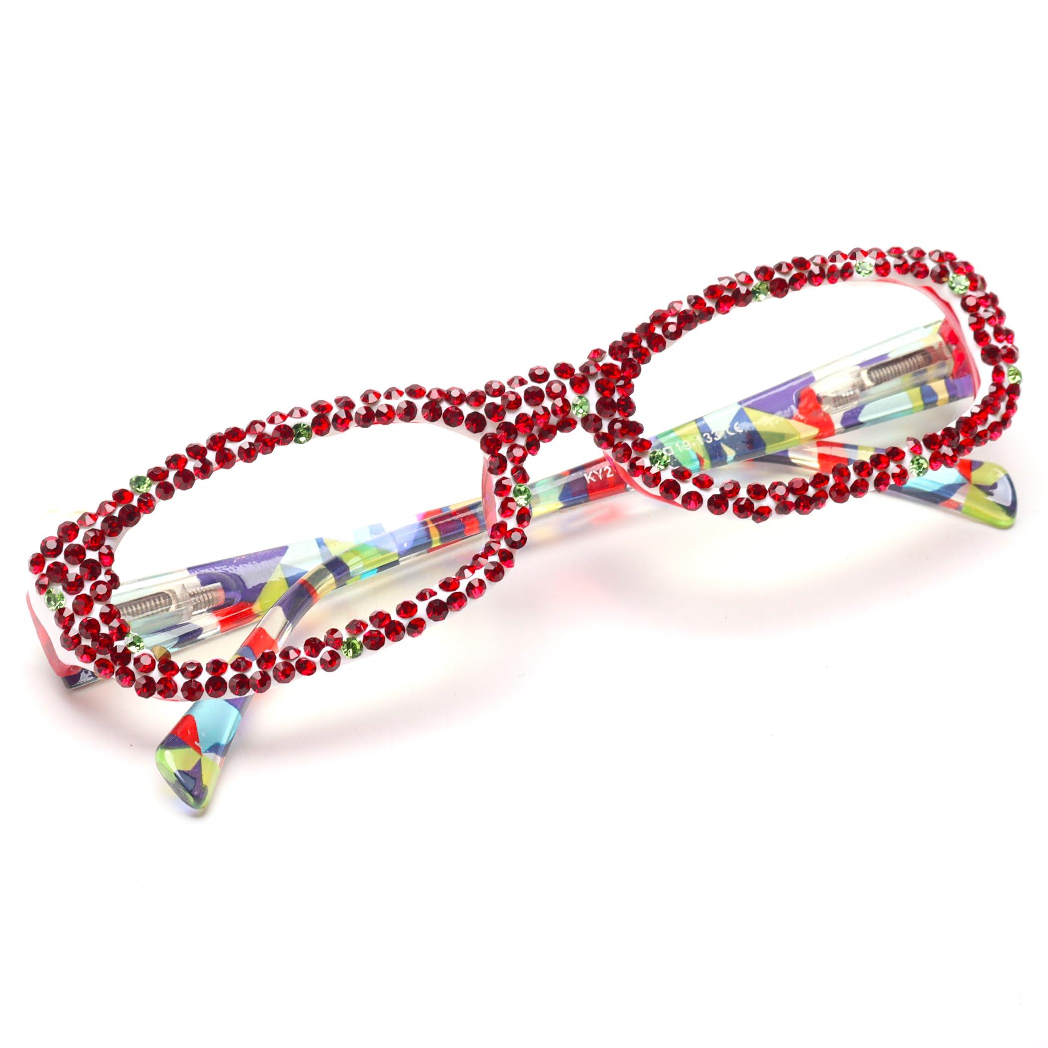 Rectangle Bling Rhinestone Reading Glasses For Women Blue Light Blocking Reader Computer Eyeglass Frame (Christmas, 3.0, x)