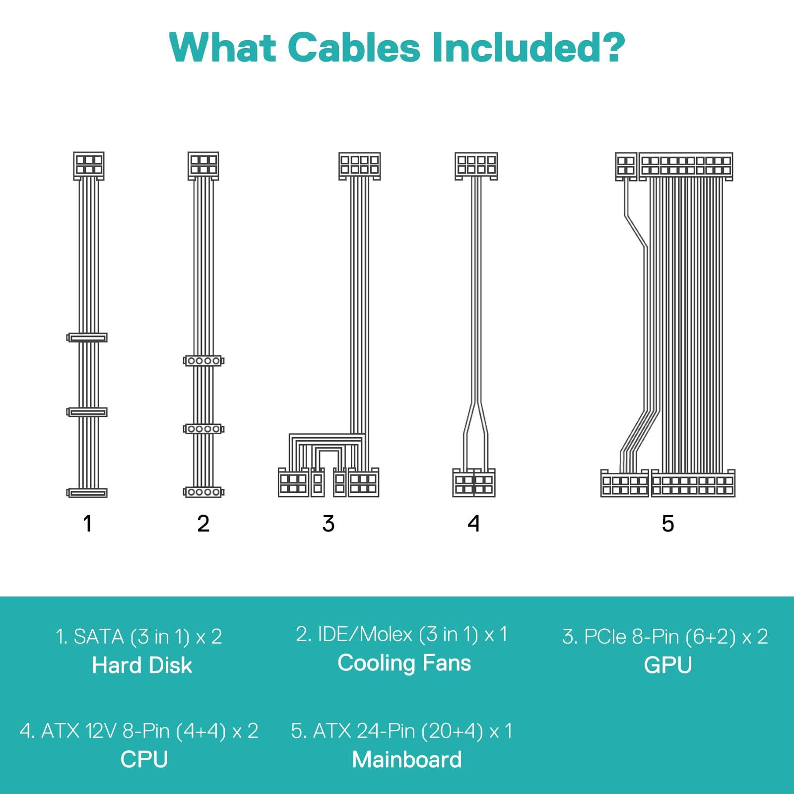 - Equipped with Flat Fully Modular Cables, which reduce clutter and improve airflow, optimize the overall efficiency & thermal performance.