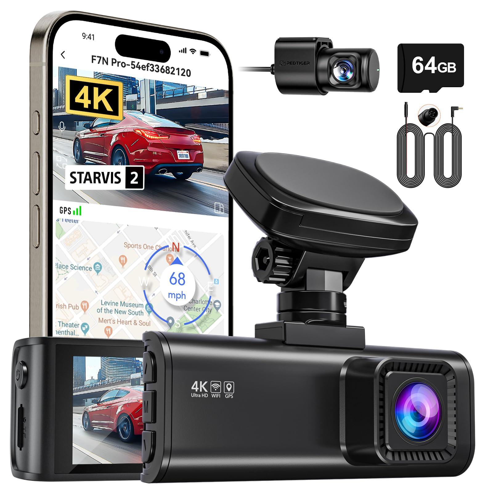 REDTIGER F7N Pro 4K Dash Cam Front and Rear included 64GB Card with 33ft Longer replacement Cable for the Rear Camera