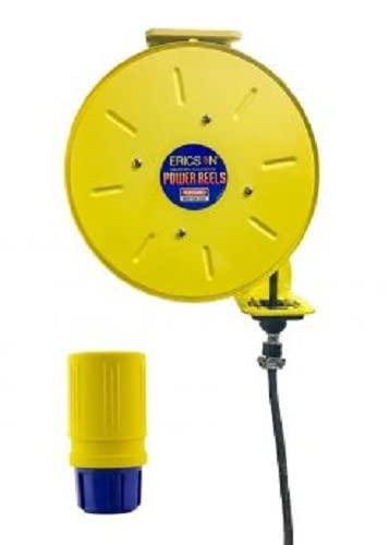 Ericson Retractable Cable Reel, Series: 4000, 125 V, 20 A, 50 ft Cord, 12/3 AWG Conductor, 12 in Reel Dia, NEMA L5-20C Receptacle, NEMA 5-20 Plug, Industrial Grade, Steel, Yellow
