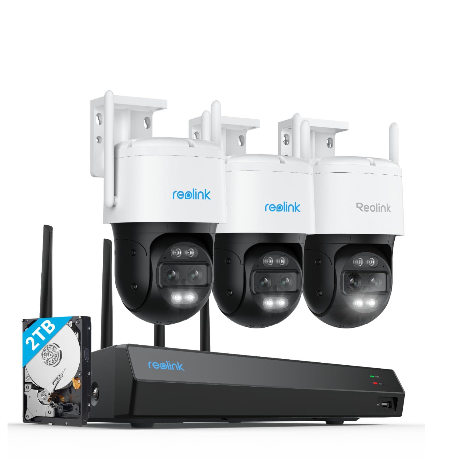 REOLINK 4K PTZ Camera System, 3pcs Dual-Lens PTZ WiFi Camera with 6X Hybrid Zoom, 1pc 12CH WiFi NVR with 2TB HDD Pre-Installed