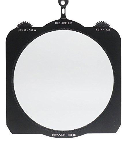 The Revar Cine Rota-Tray 45.65/138mm is a geared filter tray with no filter designed and manufactured in the USA from aircraft grade aluminum and poly materials to interface with the latest 45.65 matte boxes on the market today. Simply insert it into a top loading 45.65 size matte box tray slot and spin the gear on either side of the filter tray to rotate the filter inside. This allows for easy rotation of the filter without the need for cumbersome locking and unlocking of a rotating filter stage. The Rota-Tray also allows for rotation of a filter in matte boxes that do not feature a rotating filter stage or if a secondary rotating filter is needed in a non-rotating stage. The Rota-Tray also has features missing from other competitive products such as standard 0.8 pitch gears on both sides of the filter tray for use from either the operator or dumb side of the camera, a 1/4-20 female threaded hole for mounting of a wireless follow focus for remote crane or jib operation of the filter, and an overall low weight and profile design for maximum convenience. This is the Rota-Tray with no filter so you may choose to purchase your own Polarizer or Special Effect filters from leading filter manufacturers. Simply order an unmounted 138mm filter and confirm that it has a dimension of 5.236 +/-0.010 diameter and 0.135 +/- 0.005 thickness. Perhaps the largest innovation with Rota-Tray is the price. Compare at an average savings of 40%-70% to competitive products with more features and freshly updated design for todays cameras and matte boxes.