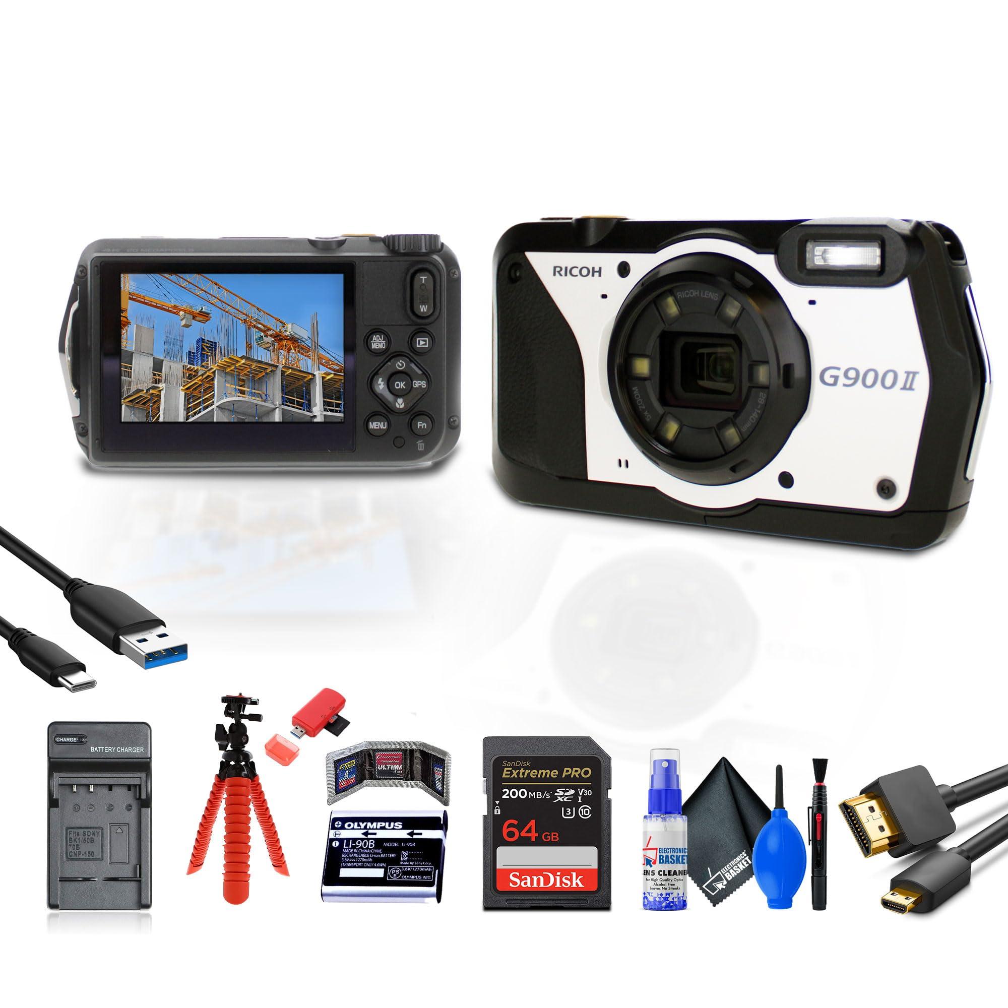 - This Bundle Includes: Ricoh G900 II Digital Camera, Rechargeable Battery, Battery Charger, 64 GB Memory Card, Card Reader, Card Wallet, Tripod, Type-C to Type-A Charge and Sync Cable, Micro HDMI Cable, Full Cleaning Kit, Flexible Hand Grip