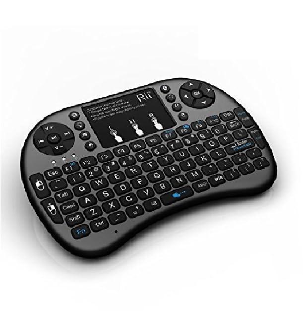 Rii i8 Rii i8+ BT Mini Wireless Bluetooth Backlight Touchpad Keyboard with Mouse for PC/Mac/Android is a 92 keys, Bluetooth wireless Keyboard with Touchpad. The keyboard includes a touchpad DPI adjustable functions and built-in high sensitive smart touchpad with 360-degree flip design. With a new classic look, the Rii Mini i8+ BT new increased LED backlit function can be used with LED lighting QWERTY keyboard with multimedia control keys and PC gaming control keys. It also contains an auto sleep and auto wake mode to help you conserve battery. The ergonomically handheld design is easy to carry and operate and a built-in rechargeable Li-ion battery that has longer standby time to top it off. Key Features 3 in 1 multi-function 2.4GHz mini wireless QWERTY keyboard, touch pad combo,LED backlit with USB interface adapter. 92 keys BT wireless QWERTY keyboard + touchpad with multi-finger functions, single Finger click as left mouse, two-finger click for right mouse, double Finger drag for Rolling screen. This is a wonderful combo, Bluetooth mini wireless QWERTY keyboard, touch pad combo with new Increased backlit LED with USB interface adapter. Built-in high sensitive smart touchpad with 360-degree flip design. This is an O.E.M. Part Product Specifications: Operating range: 15 meters(MAX), without signal disturbance and no direction limit. Frequency range: 2.403GHZ 2.480GHZ Operational voltage: 3.3V Charge Voltage: 4.4V 5.25V Modulation: GFSK Layout : US Channel: 78 channels TX Power: less than +5dBm Transmission rate: 1M bit/sec Frequency tolerance: +/-30ppm Power consumption: 55mA(on), 1mA(sleep) Battery Type: Built-in lithium-ion battery Notice: After 3 minutes without any operating will into sleep mode, press any key about 1s to wake up. Package Includes: 1 Wireless keyboard, 1 Wireless receiver, 1 Charging data cable, 1 User manual Note: It will only work with Bluetooth compatible devices.
