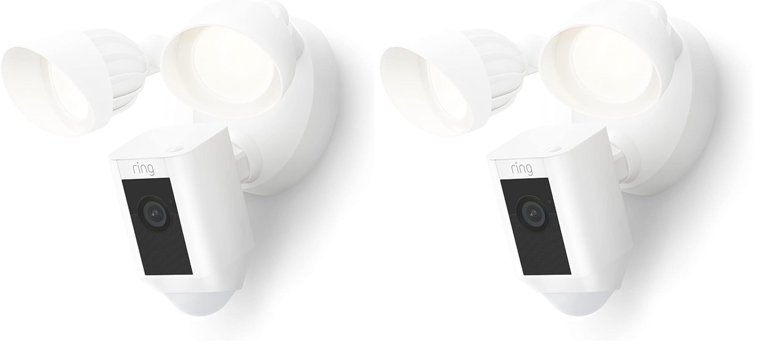 Ring Ring Floodlight Cam Wired Plus Outdoor home or business security with motion-activated 1080p HD video and floodlights, (2021 release) | 2-pack | White