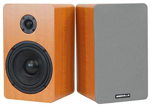 - 2) Rockville RockShelf 58C 360W wood 5.25" Home theater bookshelf speakers/8 ohm. Rms power: 45 watts each/ 90 Watts per pair. Peak power: 180 watts each/ 360 Watts per pair. Woofer: 5.25 Kevlar Cone. Tweeter: 1 silk dome tweeter.