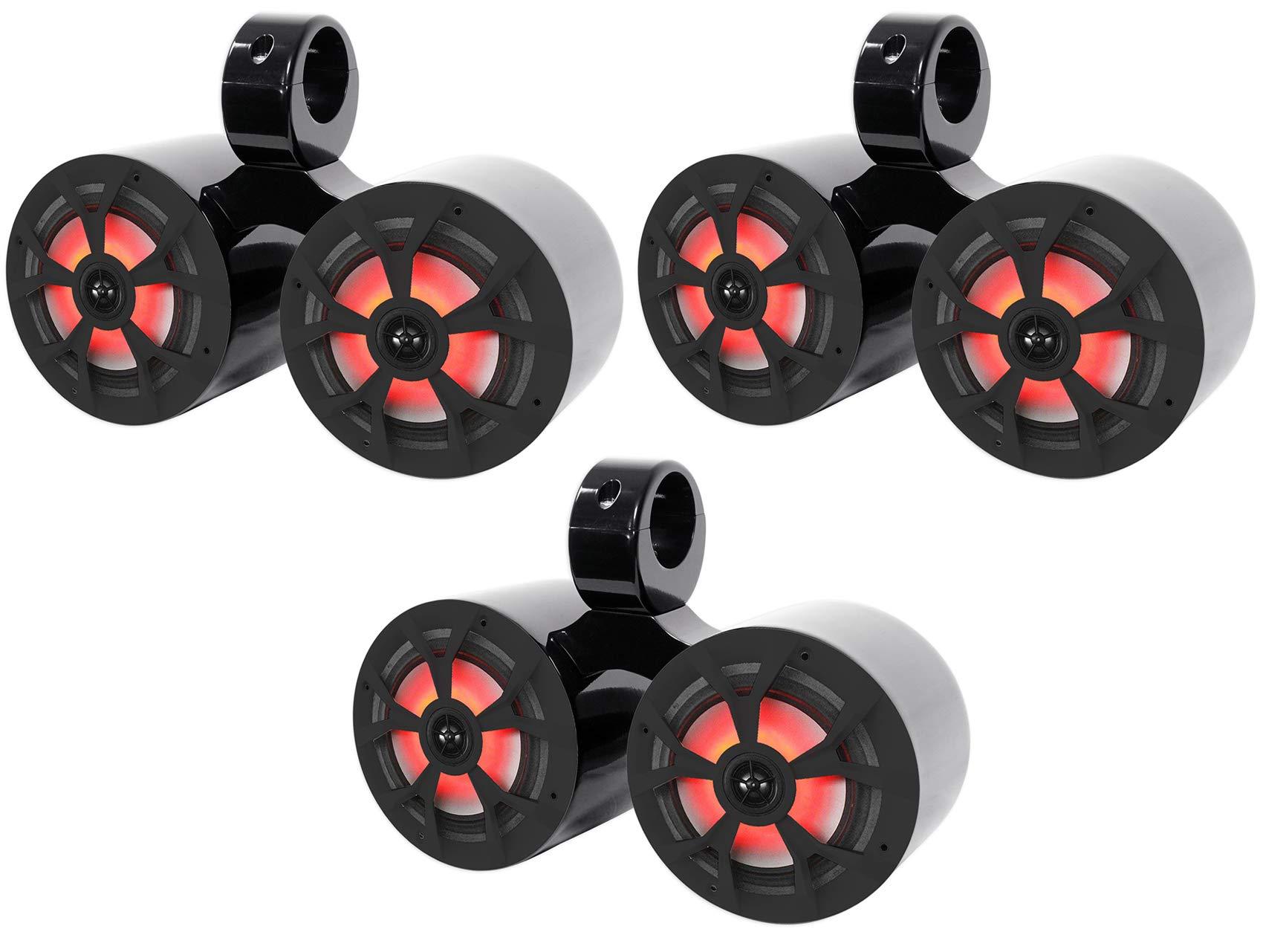 - Package Includes: (3) Pairs of RockvilIe RKL65MBW 6.5" 700w Marine Boat Speakers w/LED+Black/White Grilles. (3) RockvilIe DMAC65B Dual 6.5" Black Aluminum Wakeboard Tower Speaker Enclosure. Includes: Pair of 6.5" Marine LED Speakers. 16.4 feet of Speaker Wire. Stainless Steel Mounting Screws. Black and White Grills Included. Pair RockvilIe RKL65MBW 6.5 2-Way 700 Watt Marine Boat Speakers with LED Lights. CEA Compliant Power Ratings. Power Rating: 350 Watts Peak /85 Watts RMS Per Speaker