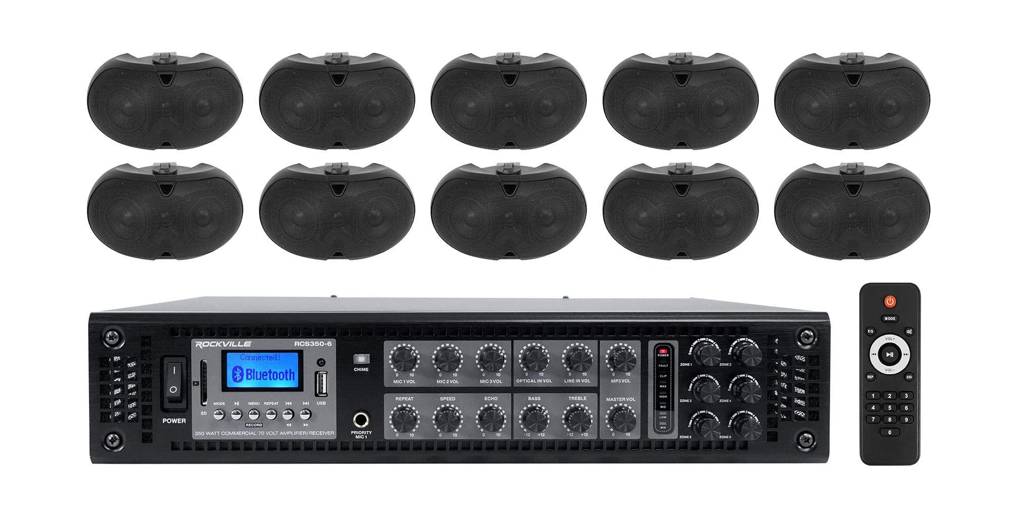 - Package Includes: (1) Rockville RCS350-6 350 Watt 6 Zone 70v Commercial/Restaurant Amplifier/Bluetooth. (10) Rockville D4-70 Black Dual 4" 70 Volt Commercial/Restaurant Wall Mount Speaker