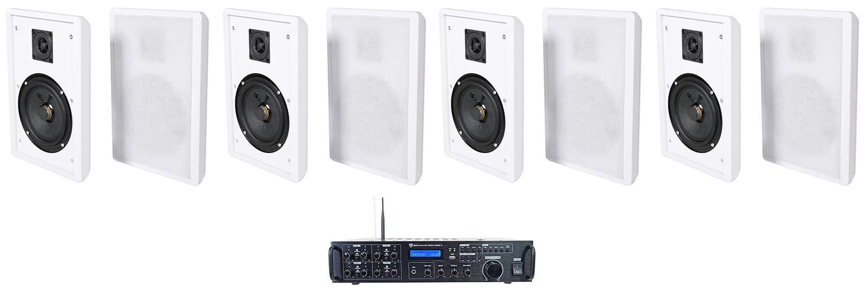 - Package Includes: (1) Rockville Rock Zone 8 8 channel 8 Zone 1000W RMS Multi Room Receiver/Amplifier, (4) Pair Rockville RockSlim Black Home Theater 5.25" 240w Easy Wall Mount Slim Speakers