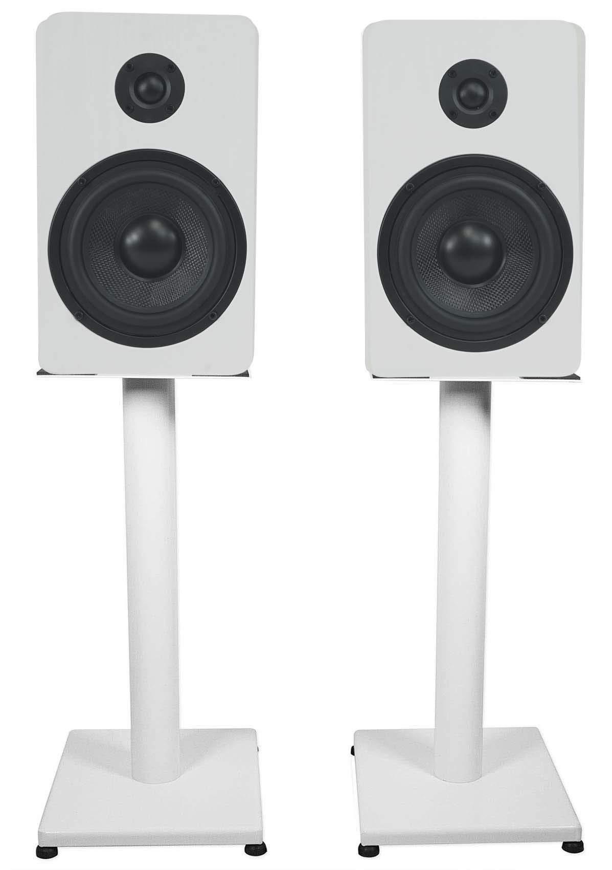 - Package Includes: (1) Pair Rockville RockShelf 54W 360w White 5.25" Home Theater Bookshelf Speakers/4 Ohm, (1) Pair Rockville RS21W 21" Steel Bookshelf Speaker/Studio Monitor Stands - White