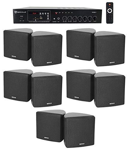 - Package Includes: (1) RockvilIe RCS80-1 60 Watt 70v Commercial/Restaurant Amplifier/Bluetooth Receiver, (5) Cube by RockvilIe Pair of 3.5" Black Commercial 70v Swivel Wall Mount Speakers