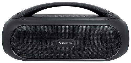 - Rockville GO PARTY MAX BASS Large Portable LED Bluetooth Speaker. XL size speaker. Max Bass version with extremely deep and loud bass. IPX5 water resistant for outdoor parties. TWS - True Wireless Stereo Linking of 2 speakers. 5 LED modes that go to the beat of the music (You can also turn the LED off). RMS Power: 35 Watts. Peak Power: 70Watts. Selectable sound styles (Bass Boost and normal).