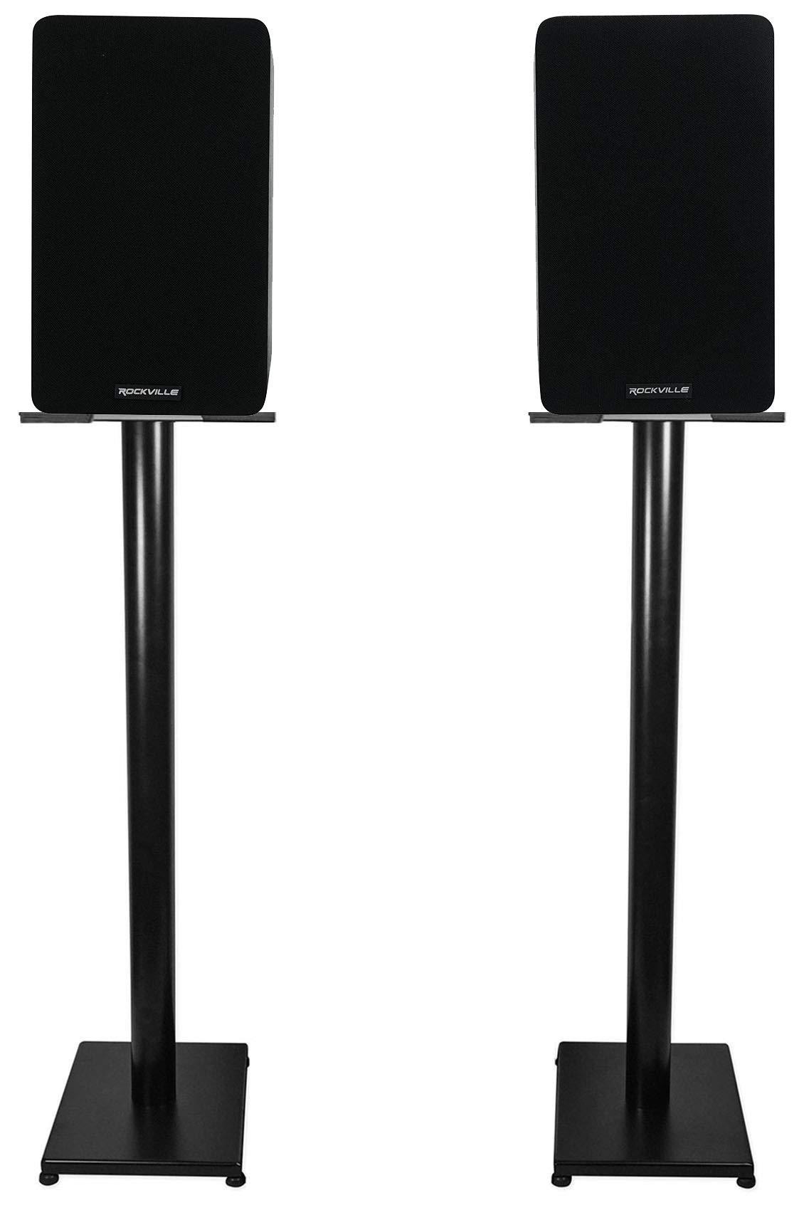 - Package Includes: (1)Pair RockvilIe RockShelf 58B 360w Black 5.25" Home Theater Bookshelf Speakers/8 Ohm. (1) Pair RockvilIe RS37B 37" Steel Bookshelf Speaker/Studio Monitor Stands in Black. Features: Pair RockvilIe RockShelf 58B V2 Black 5.25" Home Bookshelf Speakers/Kevlar Woofers. RMS Power: 45 Watts Each / 90 Watts per pair. Peak Power: 180 Watts Each / 360 Watts per pair. Woofer: 5.25 Kevlar cone. Tweeter: 1 Silk dome tweeter
