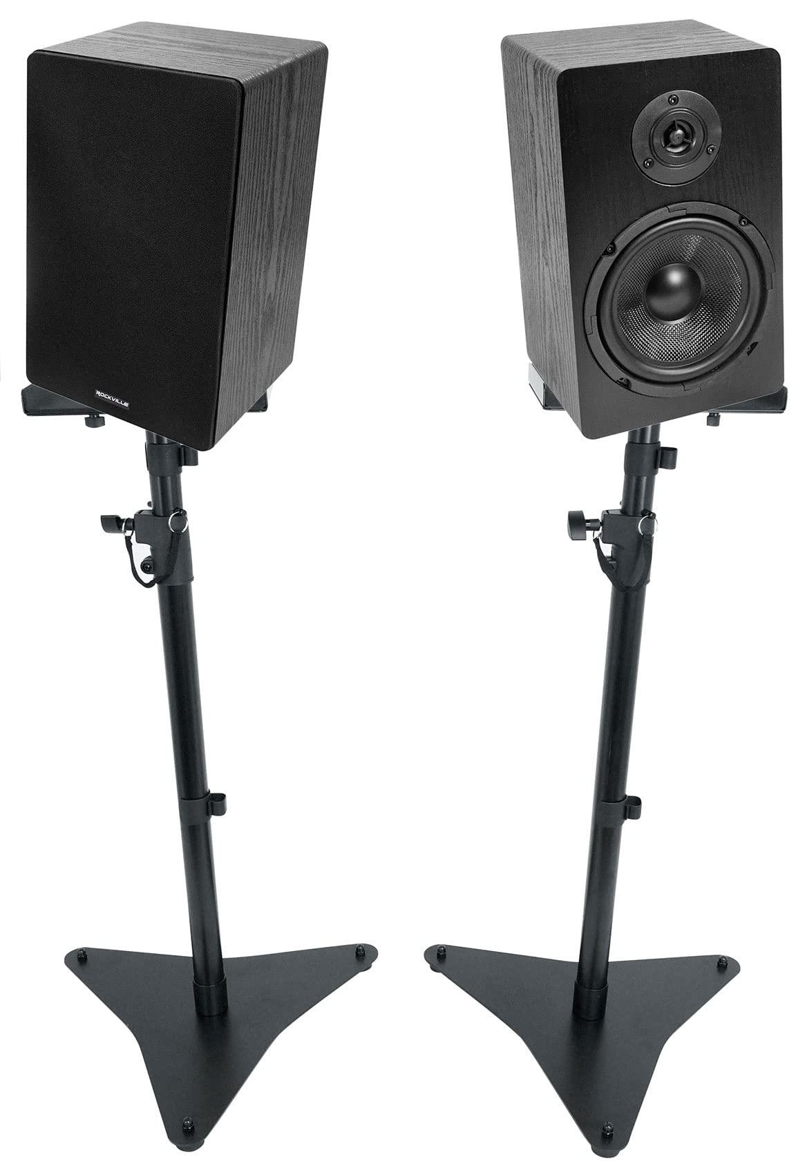 - Package Includes: (1) Pair Rockville RockShelf 68B 400w Black 6.5" Home Theater Bookshelf Speakers/8 Ohm. (1) Rockville RVSM5 Pair Studio Monitor Bookshelf Speaker Stands w/Adjustable Height