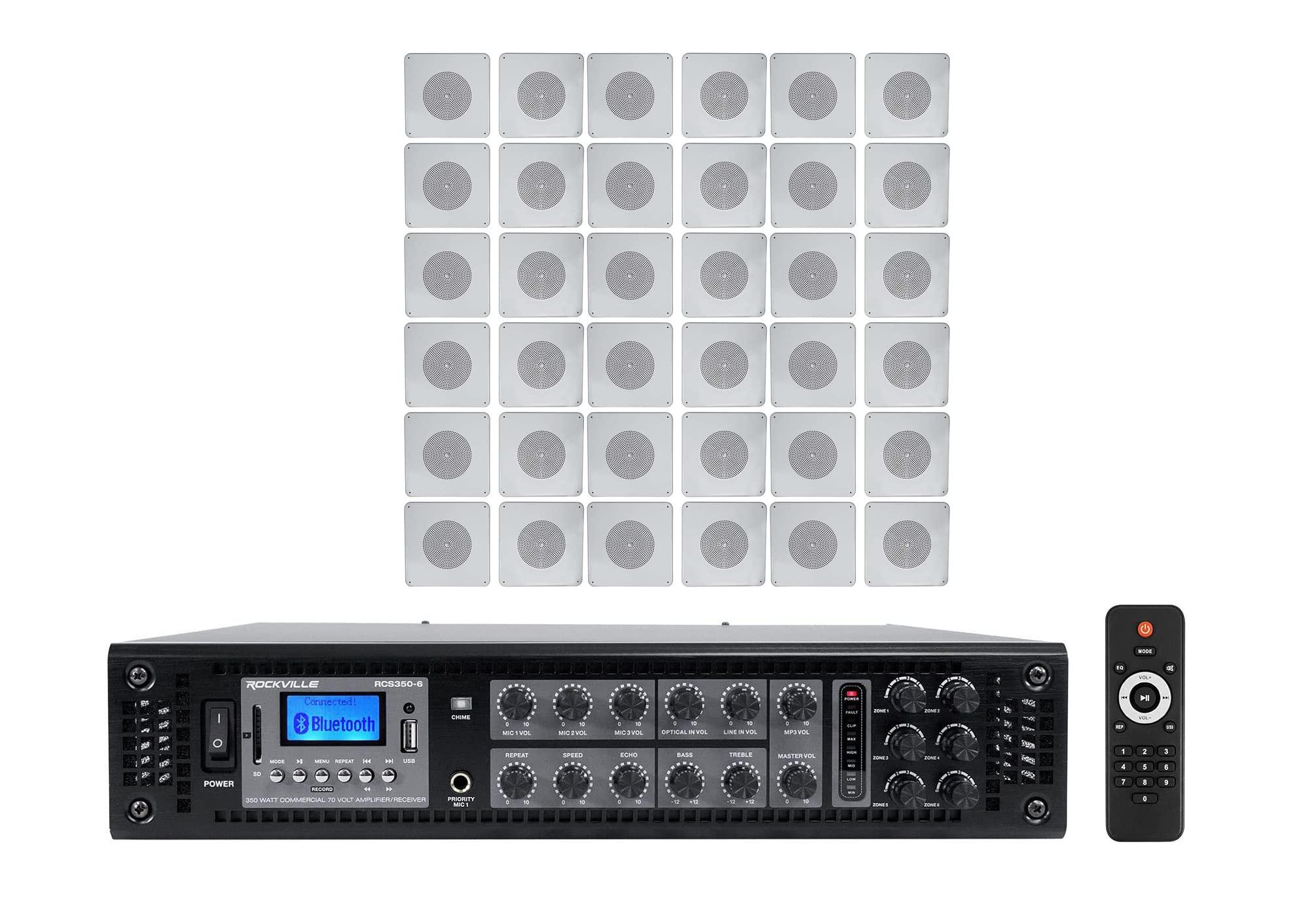 - Package Includes: (1) Rockville RCS350-6 350 Watt 6 Zone 70v Commercial/Restaurant Amplifier/Bluetooth. (18) Pair Rockville MS81 Metal 8" 70v Commercial Background Music PA Ceiling Speakers