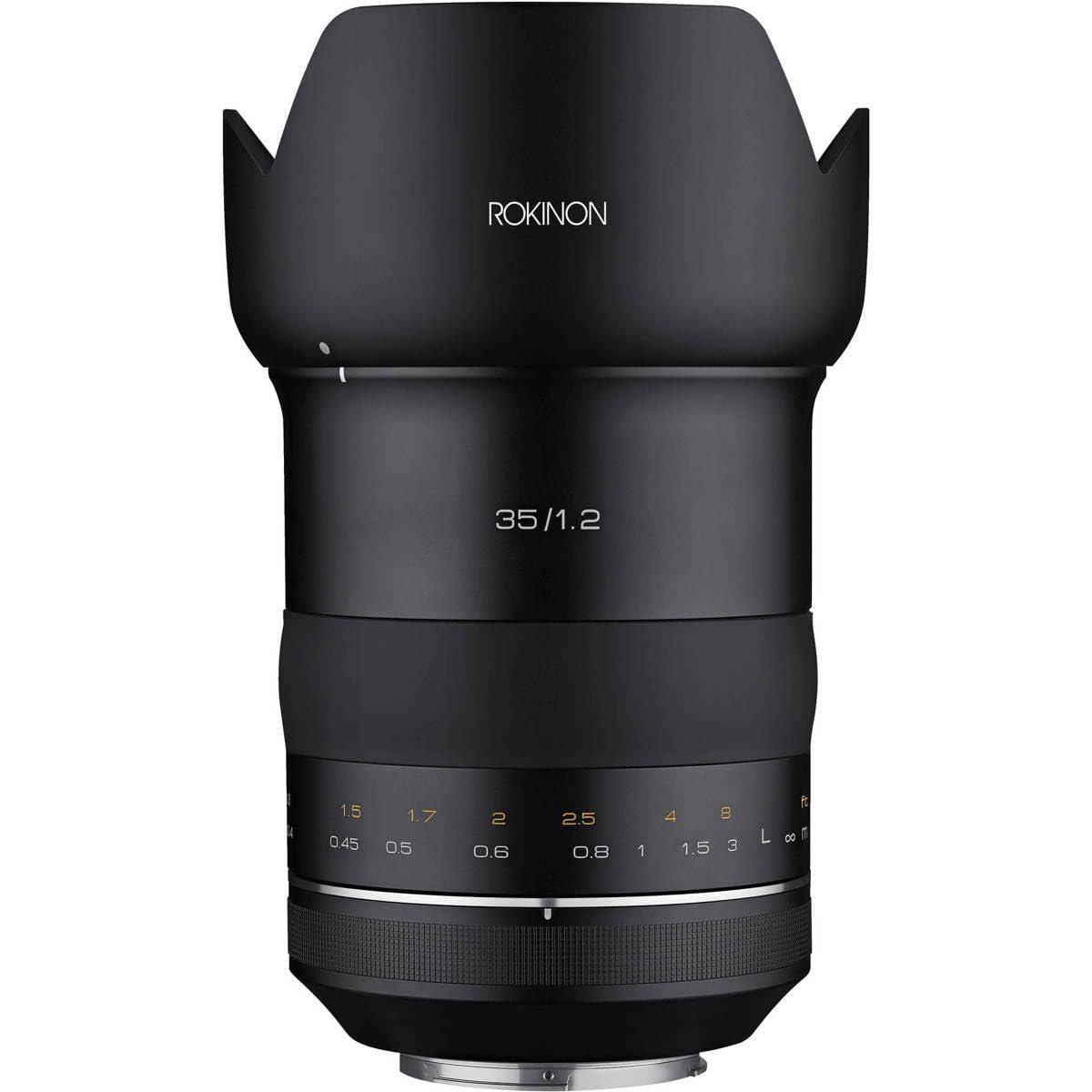 The Rokinon SP 35mm F1.2 is a premium quality prime lens yielding extraordinary image quality for 50 megapixel photos and 8K (8192 x 4320) video productions. It features a moderate wide angle of view with Full Frame Canon DSLRs and works as a 56mm normal lens with APS-C sensor models. Delivering superb optical performance even wide open, the impressively bright f/1.2 aperture and nine blade diaphragm provide precise selective focus control with beautiful bokeh. It is the perfect lens choice for capturing exceptional high resolution images in vivid colors of a broad range of subjects including nightscapes, portraits, architecture or anything in difficult lighting conditions The optical design of the ROKINON SP 35mm F1.2 boasts 12 elements in 10 groups and incorporates Extra-Low Dispersion, Aspherical and High Refractive lens components to ensure impressive image quality. Constructed of high quality aluminum alloy with an ergonomically designed shape and focusing control grip, it delivers a luxurious look, excellent durability and comfortable use. Additionally, Canons exposure control modes are enabled, EXIF info is registered, and its non-rotating filter mount allows for the easy use of polarizers and other rotating types of filters.