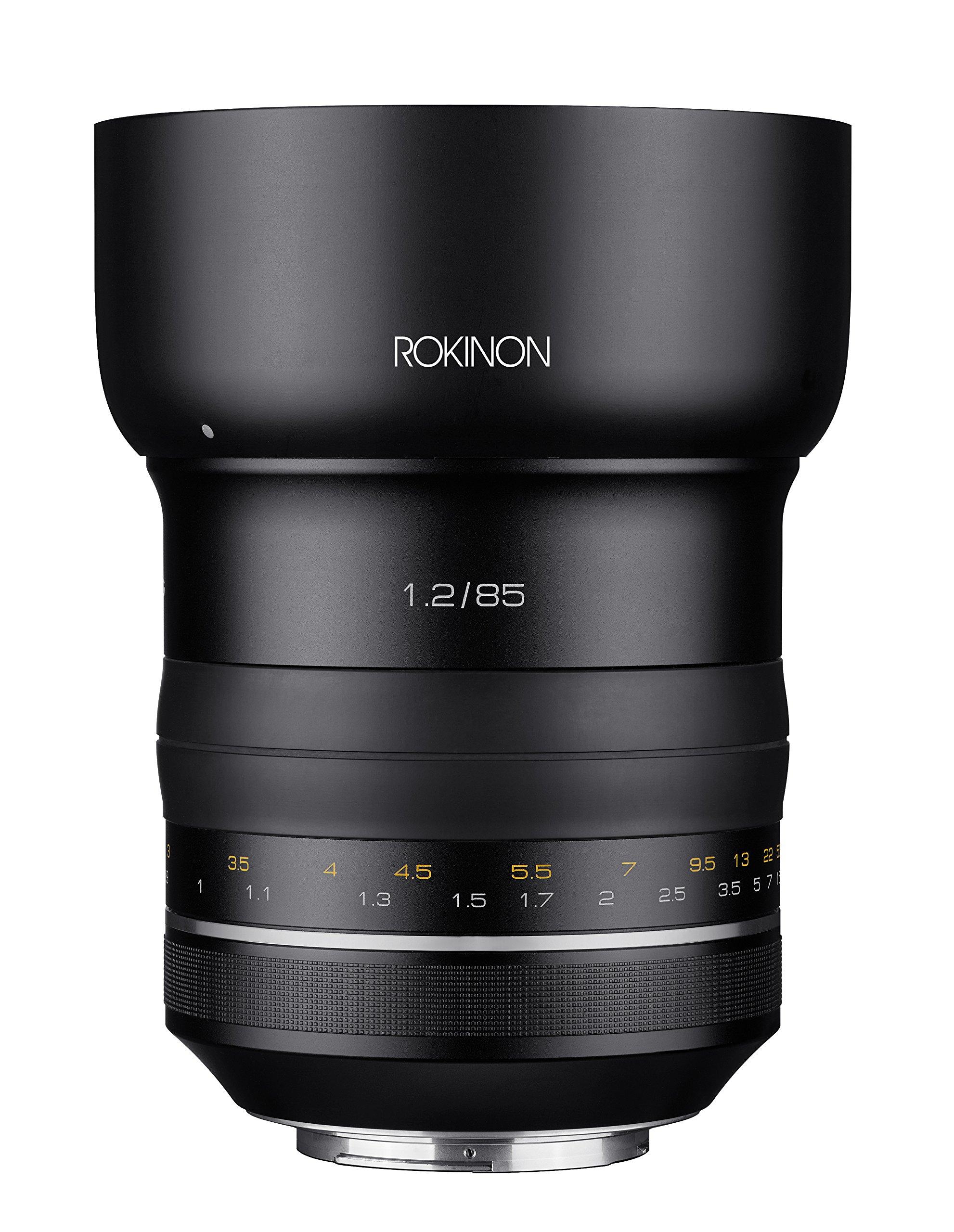 This new, high speed, Rokinon SP 85mm F1.2 performs to the highest photographic standards and carries Rokinon's Special Performance (SP) designation. It provides image quality for 50 megapixels photo and 8K video productions with exceptional low light, bokeh and selective focus capabilities. The Rokinon SP 85mm F1.2 full frame prime lens for Canon is an extremely fast, premium quality, medium telephoto lens that delivers superb optical performance even wide open. The large aperture and nine blade diaphragm can create a shallow depth-of-field to bring attention to the subject, blur the background and create gorgeous bokeh. Ideal for portraits and weddings, it is also a perfect choice for shooting without a flash in low light conditions as well as for astrophotography. Its ten elements in seven groups design utilizes one aspherical and two high refractive lens elements to ensure impressive image quality from the center to corner of the image. The Rokinon SP 85mm F1.2 also retains a precise, damped and easy to use grip manual focus control. It also features a non-rotating filter mount for use with polarizing and other filters where positioning must be maintained.