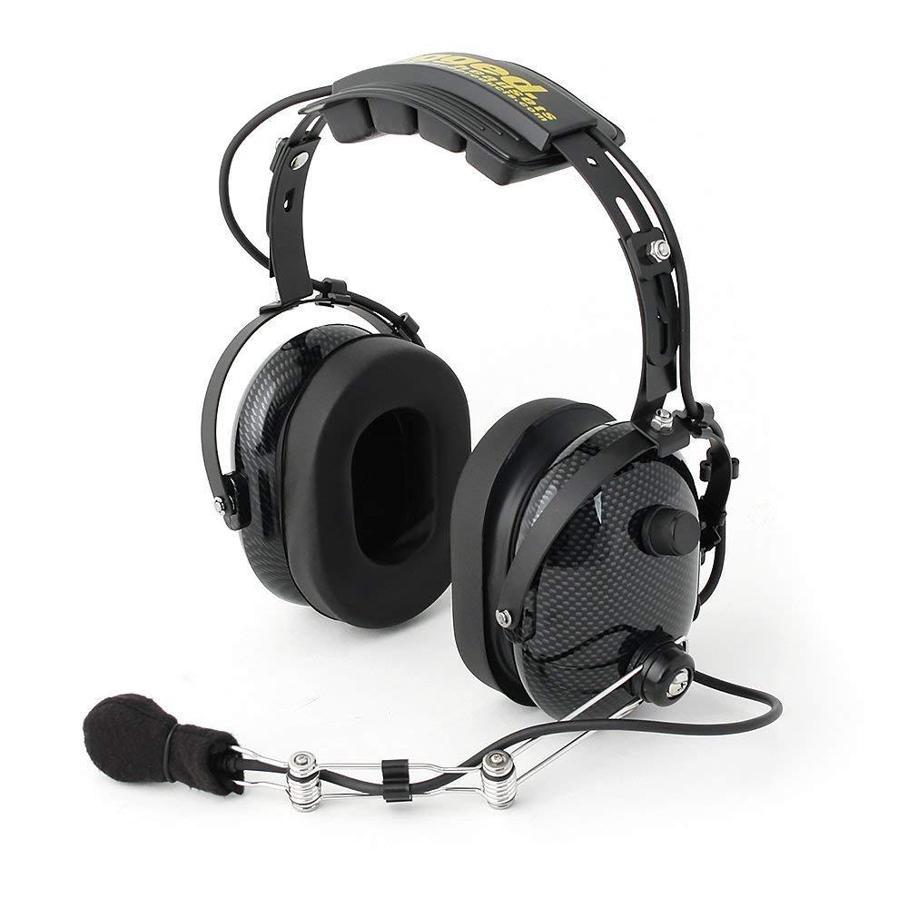 Rugged Carbon Fiber Over The Head Headset for Racing Radios Electronics Communications Features Volume Control Knob 3.5mm 5-Pin Input Jack and Push to Talk