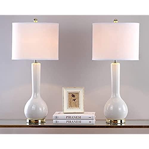 - This lamp features a white cotton shade