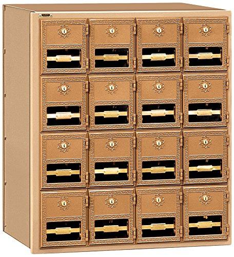 Salsbury 2000 Series Brass Mailboxes - Rear Loading - Private Access ideal for colleges, schools, private postal centers, corporate mail centers, military bases, government agencies and many other applications. Keyed versions can be accessed by the U. S. P. S. when installed in rotary mail centers. . Available with 3 different door sizes: (#1) 3-1/2" W x 5" H, (#2) 5-1/2" W x 6" H, (#3) 11" W x 6" H. Available in 4 different configurations: 30 door unit (#1 doors), 16 door unit (#2 doors), 14 door unit (12 - #2 doors and 2 - #3 doors), 8 door unit (#3 doors). Compartments are constructed of 20 gauge steel and feature a powder coated tan finish. Solid brass die-cast doors with a clear 1/4" thick glass window and a name plate. Doors feature a powder coated gold finish. Doors include a 5 pin cylinder cam lock (with 2 keys). Doors are hinged on brass frames. Door frame attaches to individual compartments with 4 screws. Salsbury Industries is an ISO 9001: 2008 certified company and has excelled in the field of manufacturing since 1936.