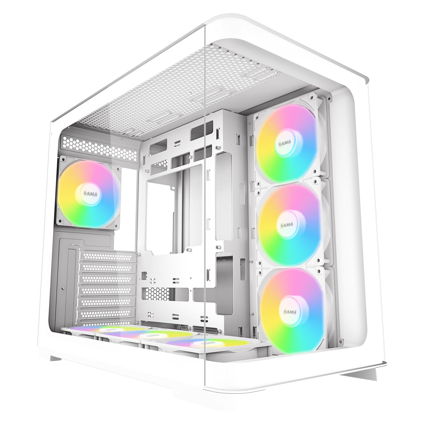 - Elegant Curved Glass Design: SAMA V60 mid-tower PC case features a curved tempered glass front panel, offering a sleek look and a full view of your hardware. With dimensions of 475285398MM, it is perfect for showcasing premium components and RGB lighting.