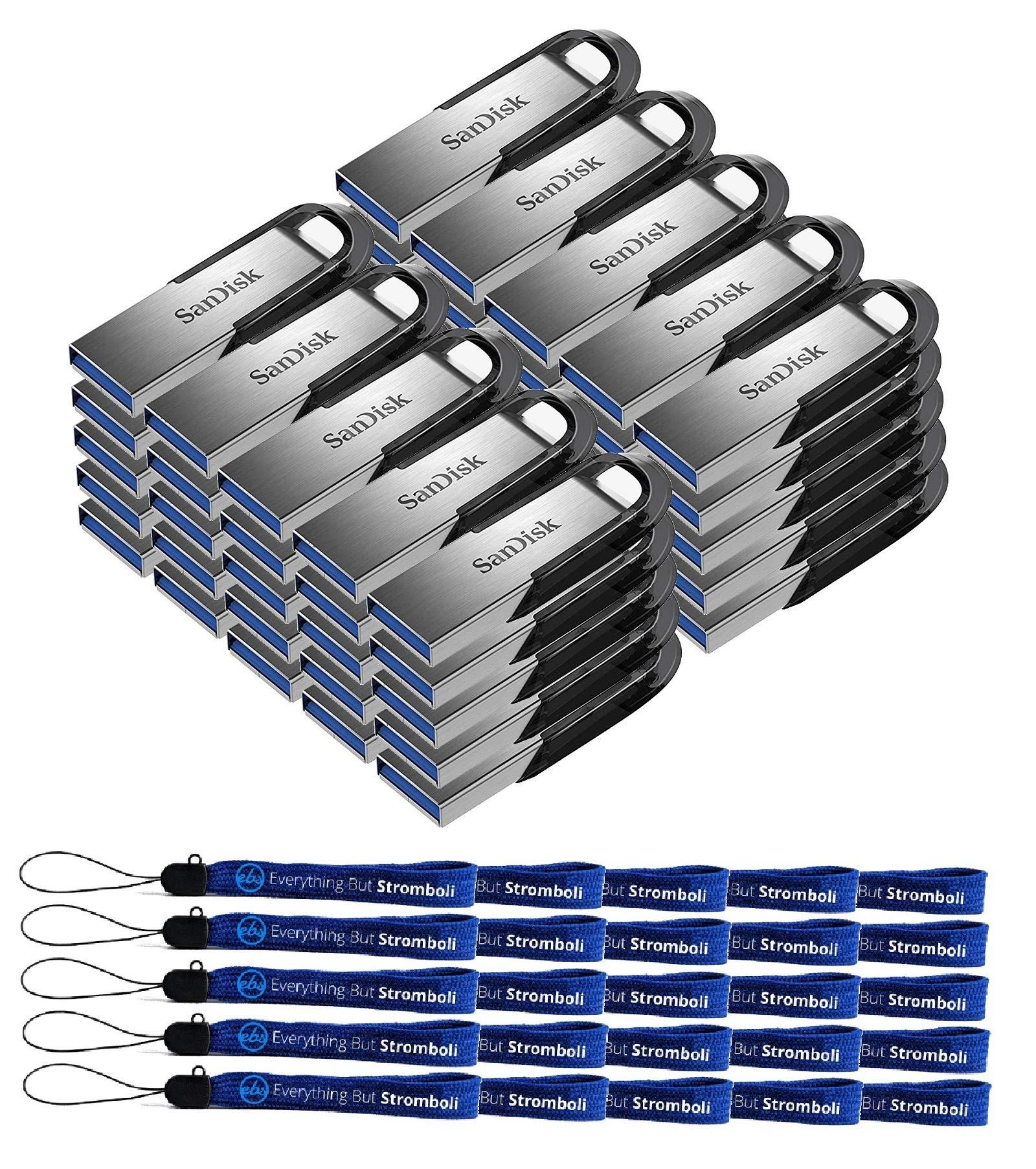 - Bundle includes (50) 32GB SanDisk Ultra Flair USB Flash Drives with 3.0 speed and (25) Everything But Stromboli Lanyards