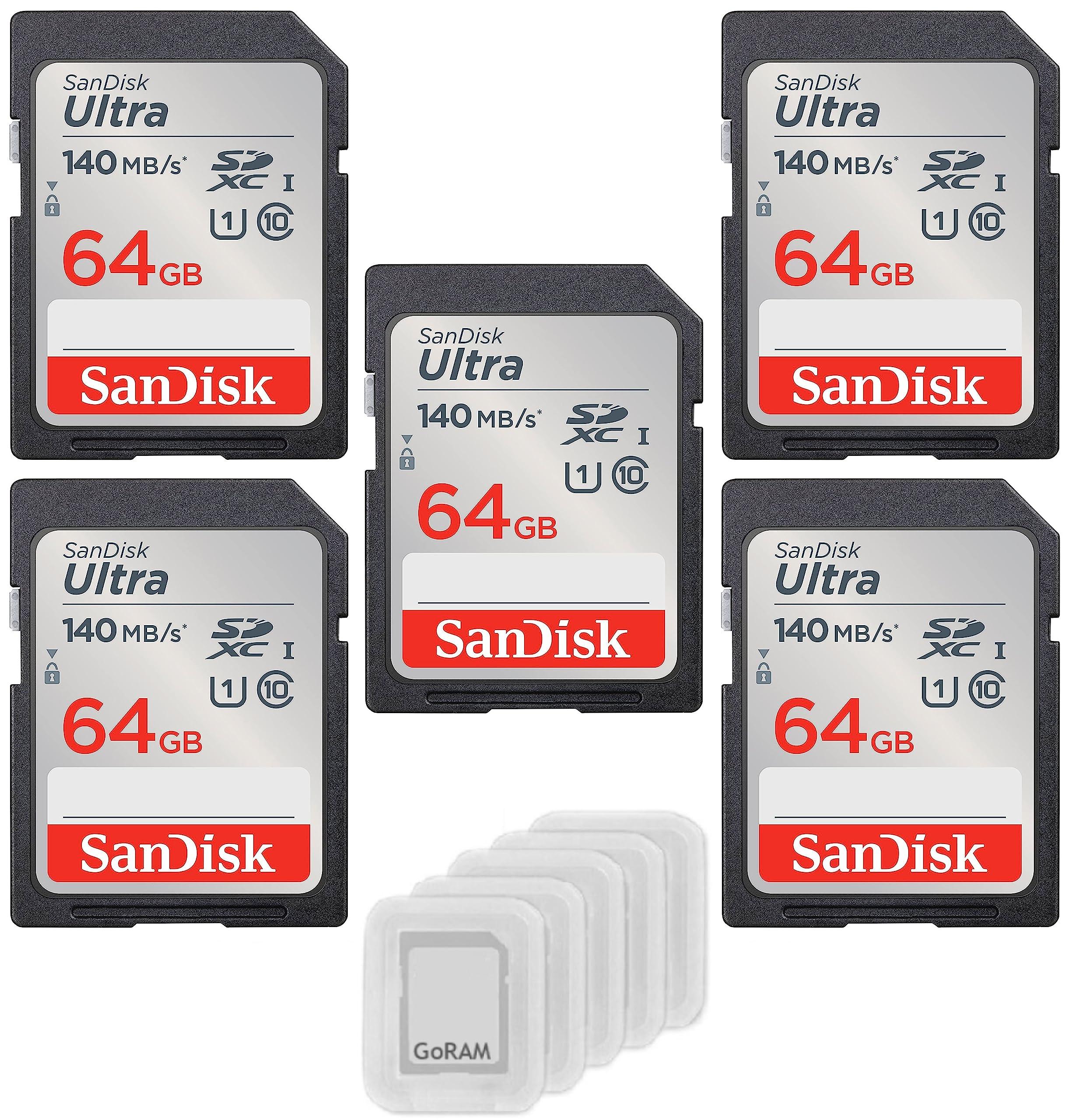 - Bundle includes: 5 x 64GB SDXC Ultra Memory Cards, 5 x GoRAM Plastic Cases