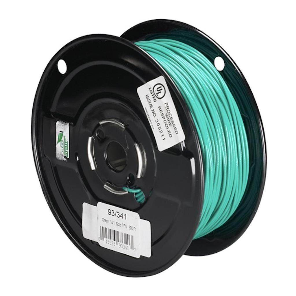 Lighting Wire Spool, 18/1 Solid 105C TFN PVC, Nylon Wire 500 Ft./Spool, Green