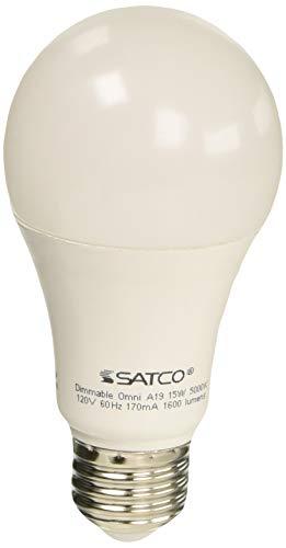 15W, A19 LED, Frosted, 5000K, Medium base, 220 deg. beam spread, 120V