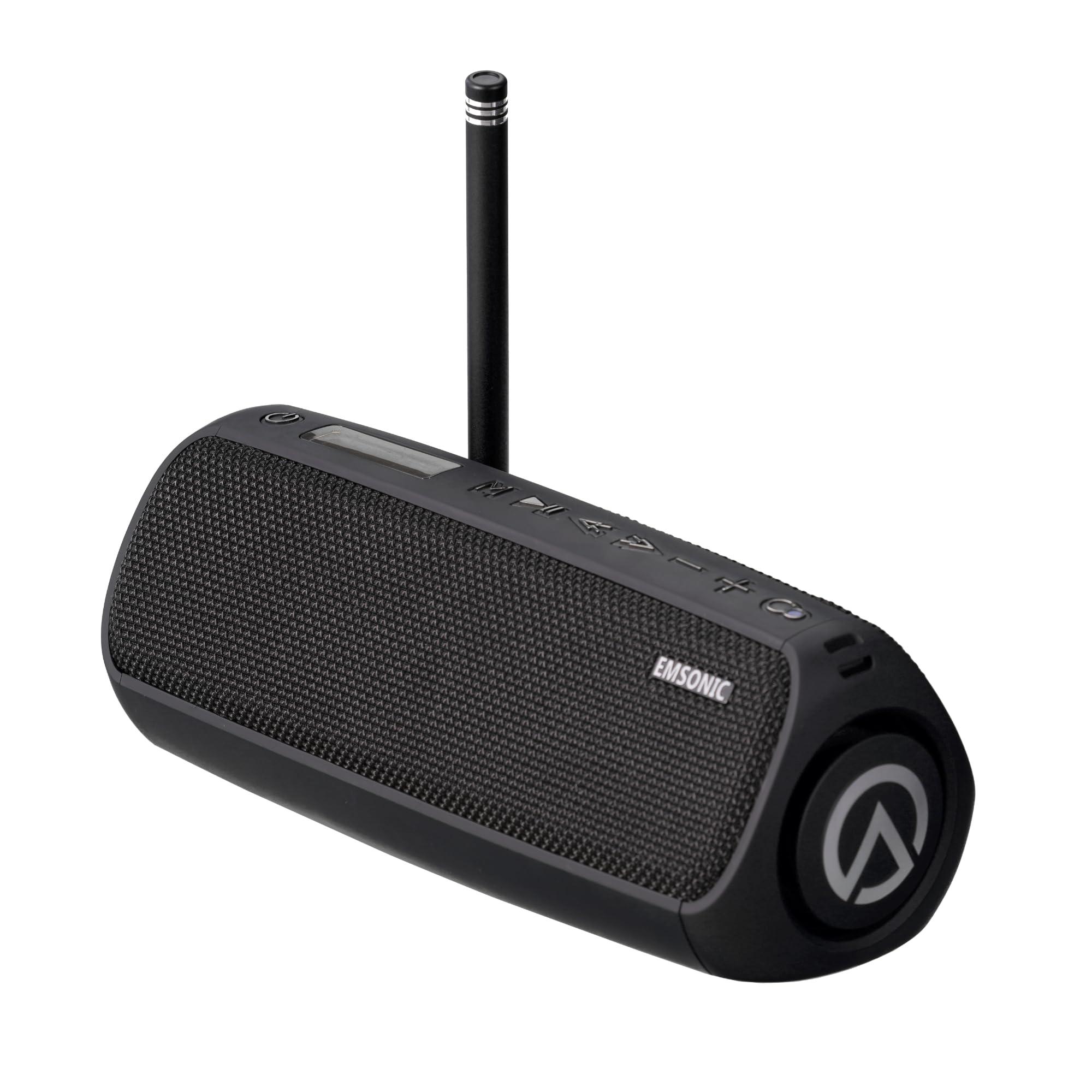 Emsonic Saver By Emsonic - Portable Bluetooth Speaker, Waterproof Speaker with Carbon Monoxide Detector & FM Radio - 24-Hour Playtime, 40W Powerfull Sound & Deep Bass - Black