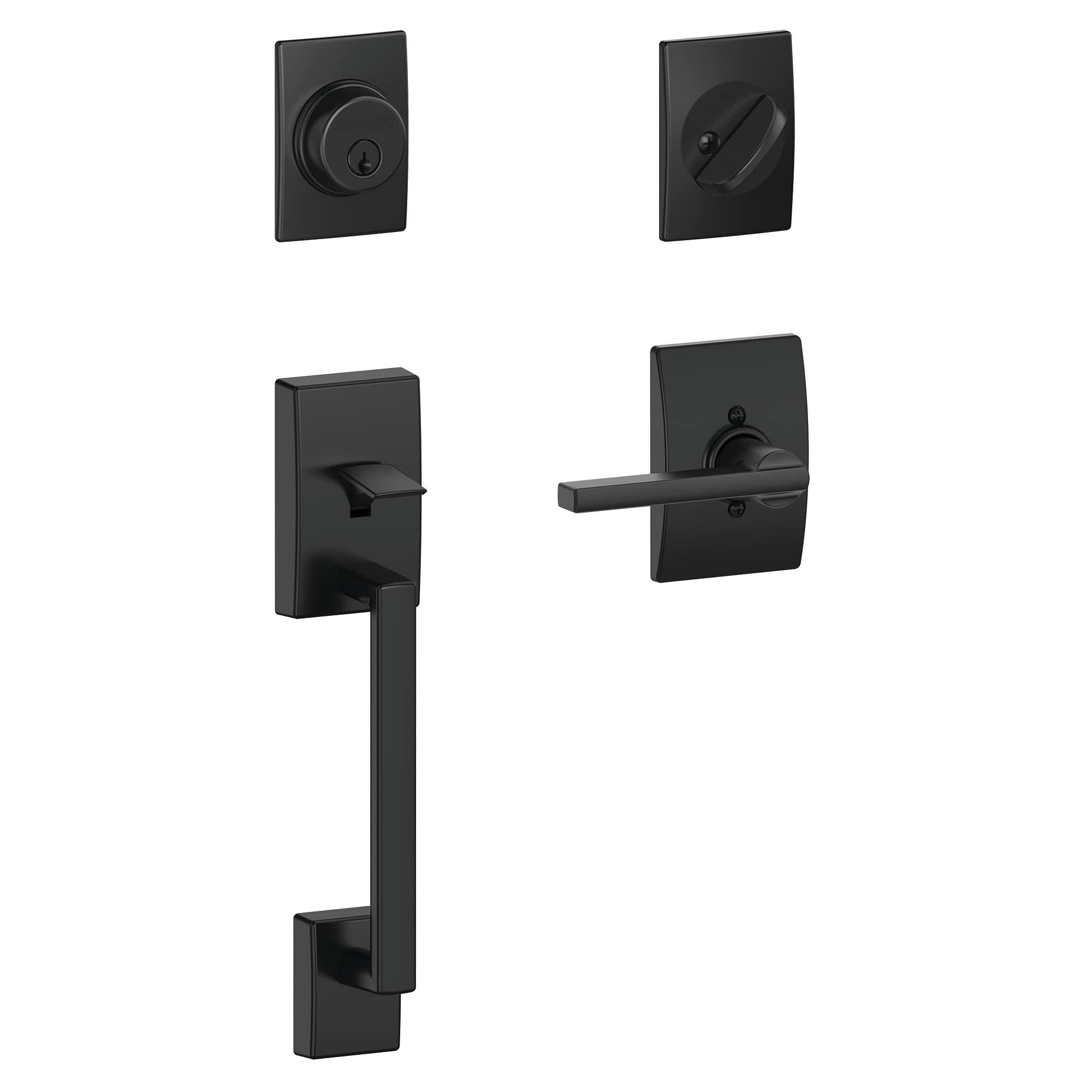 This Schlage handleset features a decorative deadbolt, matching exterior handleset grip and interior passage door knob or lever. Offering premium construction combined with a sleek design and industry-leading warranty, this is the perfect door handleset for your customized entryway. Trust your home to Schlage, makers of high-quality, innovative door hardware for over 100 years.