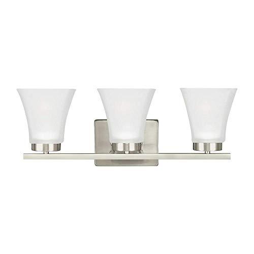 - SOPHISTICATION AND DESIGN: Featured in the decorative Bayfield collection, this vanity light kit is the perfect option for brightening up any space in your home. Sea Gull Lighting's Three Light Wall / Bath features satin etched glass shades and adds a touch a style and interest to any room.