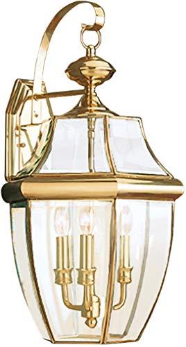 Sea Gull Lighting Generation 8040EN-02 Traditional Three Light Outdoor Wall Lantern from Seagull-Lancaster Collection Cast Finish, Polished Brass