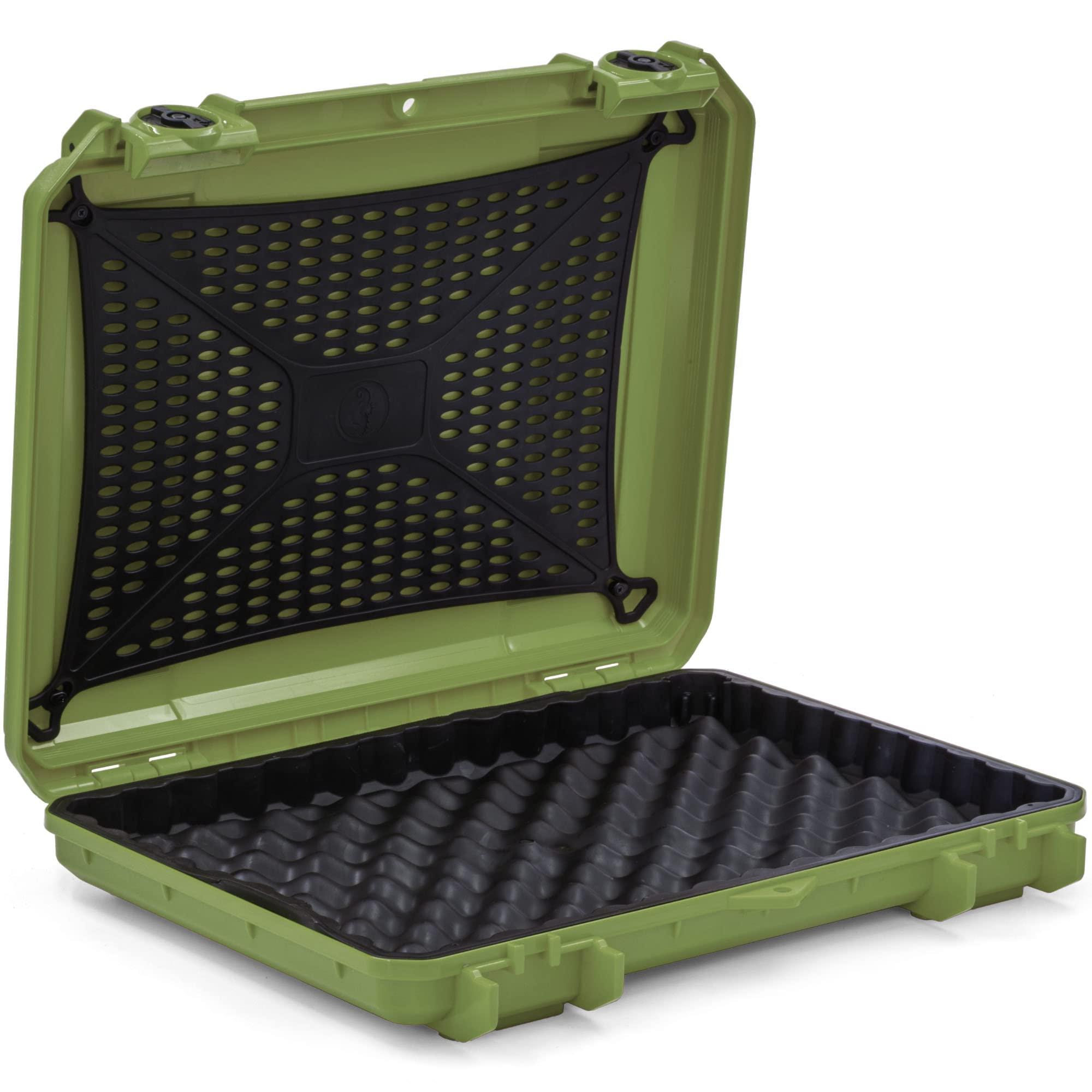 Keep your valuable equipment safe with the Seahorse 85 laptop hardback case. Close and latch your case with the dual plastic keyed locks to automatically seal your gear against water, Air and dust. Shock absorbent liner and web lid ensures your laptop or tablet will be free from dings. Automatic pressure purse valve. made in the USA.