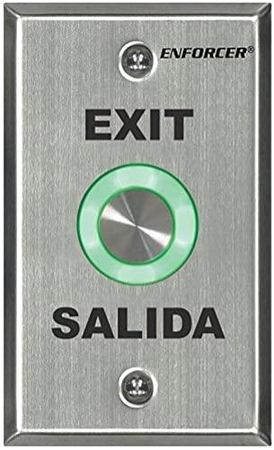 Seco-Larm SD-6276-SS1Q Enforcer Piezoelectric Illuminated RTE Wall Plate with Timer, Single-gang; Programmable Red/Green Round Button with "EXIT" & "SALIDA"; Timed or Toggle Output